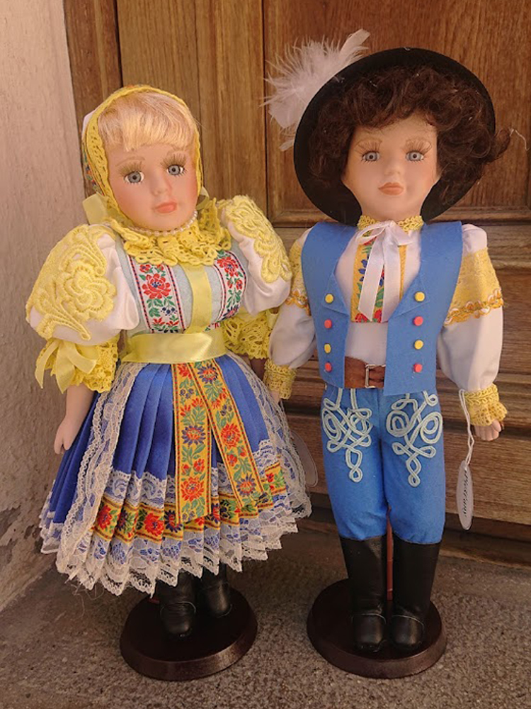 Terchovský párĽudové, porcelánové bábiky v tradičných ručne šitých krojoch regiónov celého Slovenska.