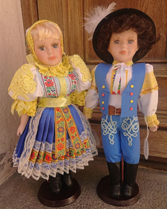 Horehronský párĽudové, porcelánové bábiky v tradičných ručne šitých krojoch regiónov celého Slovenska.